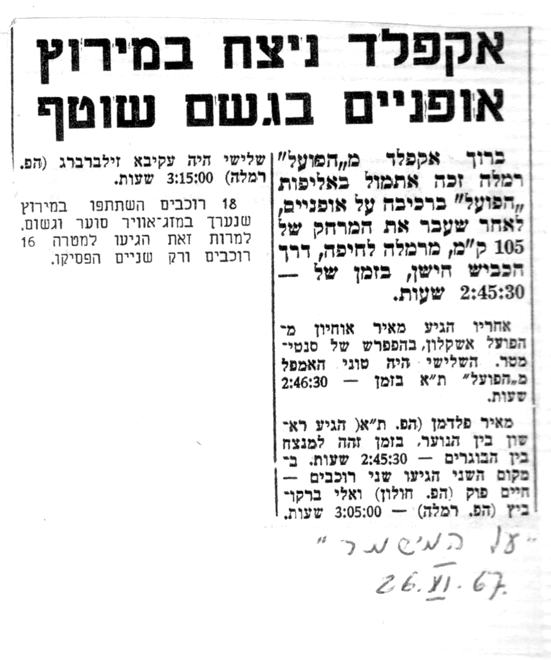 מרוצי אופניים 1960-1973 אוסף ברוך אקפלד ,כל הזכיות שמורות לאלי סמוכה אלי סמוכה פברואר 14, 2025 אופניים כתוב תגובה 106 צפיות